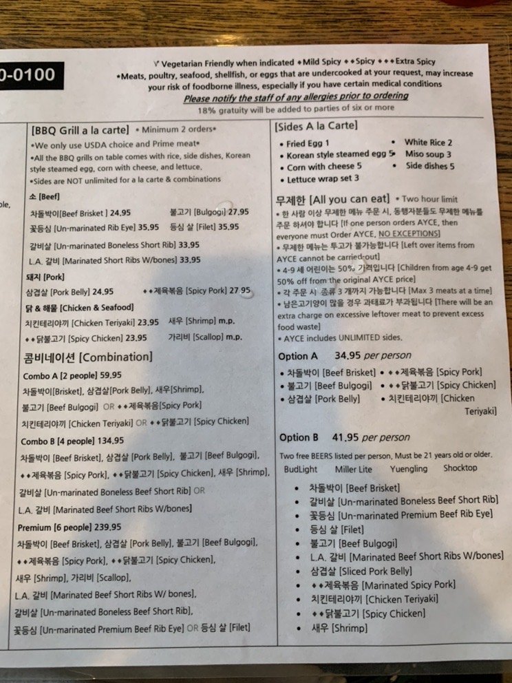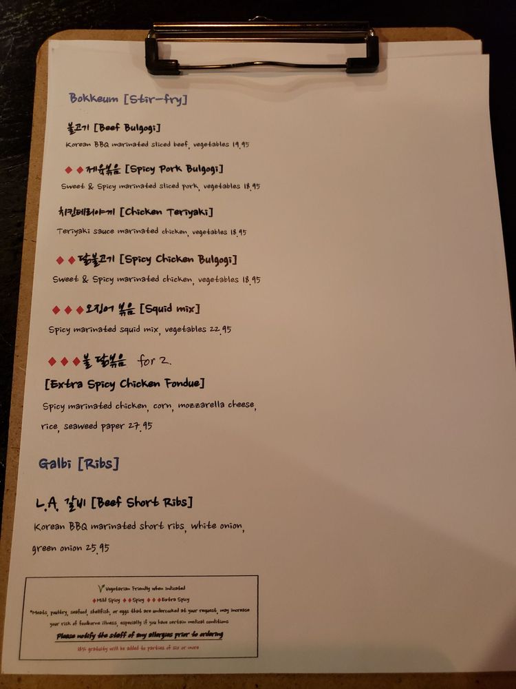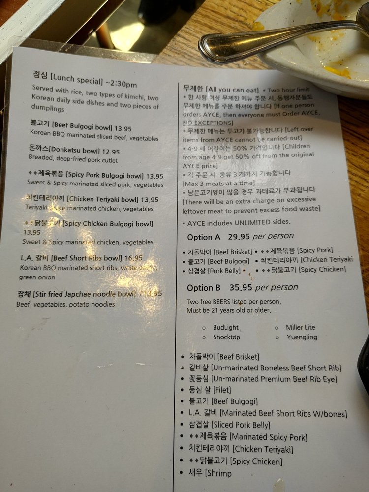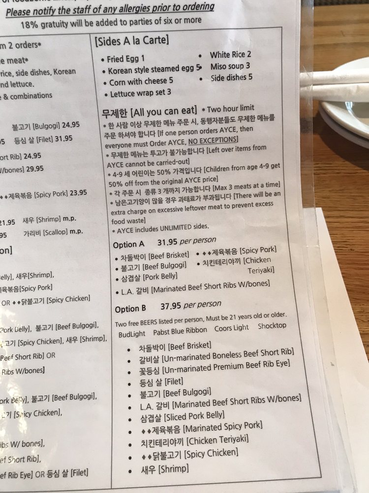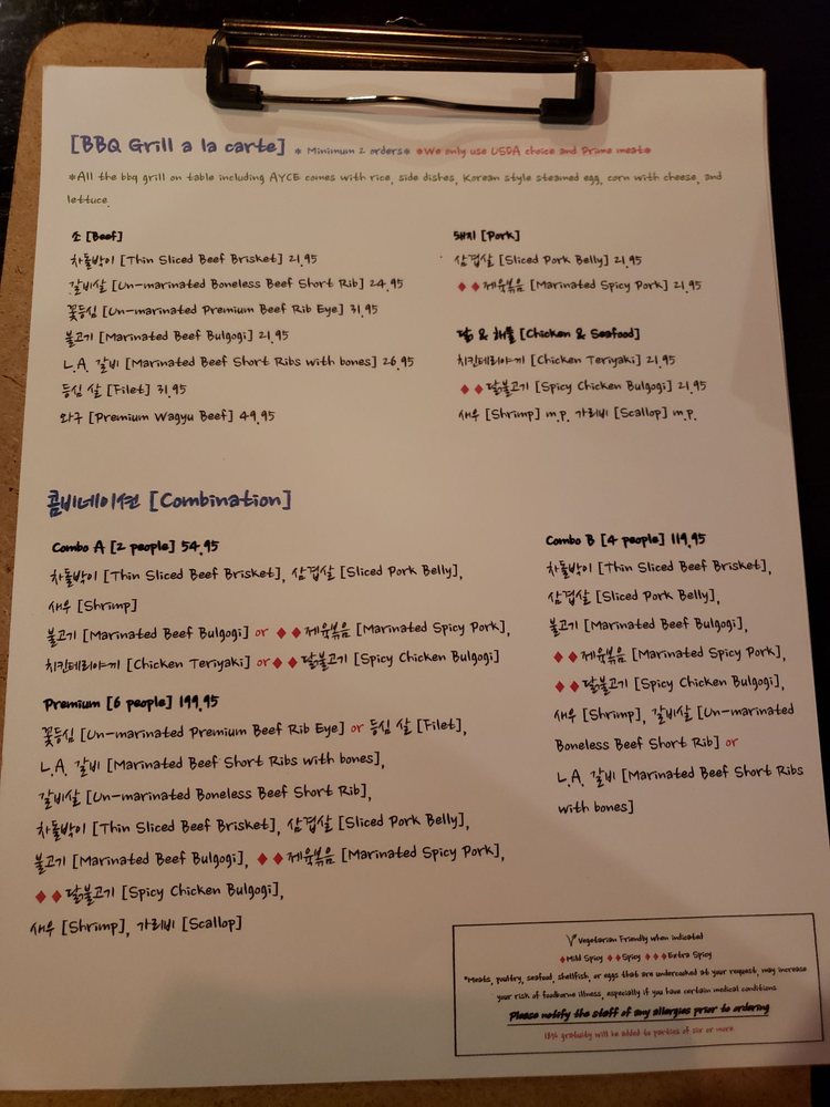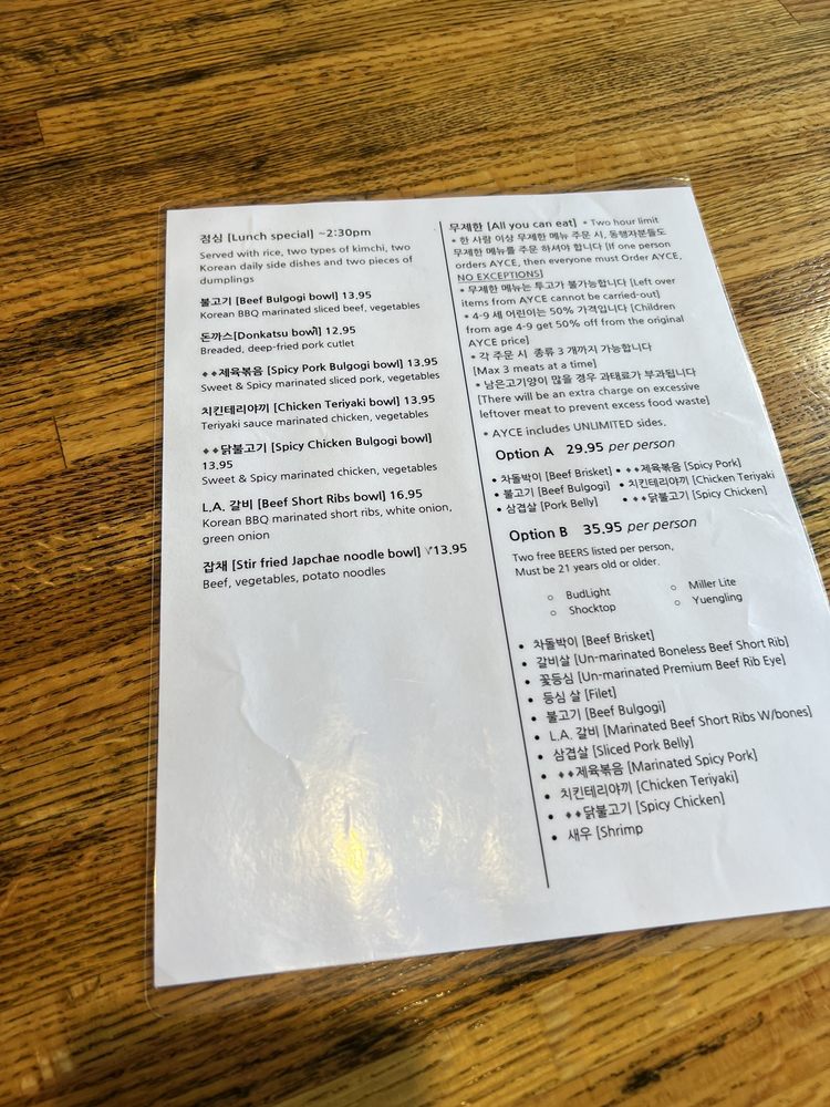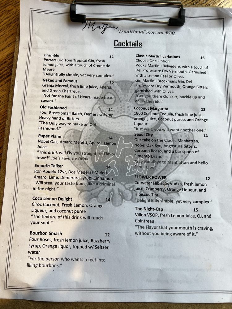 Matjoa Korean BBQ Menu